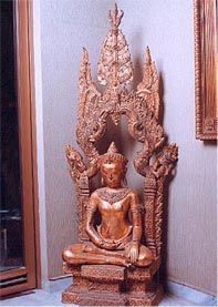 Cambodian golden bronze sitting Buddha on throne