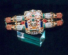 Inlaid with 356 brilliants, 127 rubies, 40 emeralds, enamelled