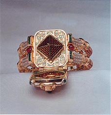 Inlaid with 356 brilliants, 127 rubies, 40 emeralds, enamelled