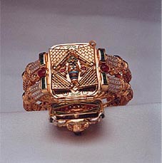 Inlaid with 356 brilliants, 127 rubies, 40 emeralds, enamelled